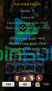 Kask - 5 ort 5 farm Kalkan -2 ort 8 farm Küpe - 3 ort 8 farm Bilezik -2 ort 3 farm Ayakkabı - 7 ort 6 farm Kolye -5 ort 3 farm